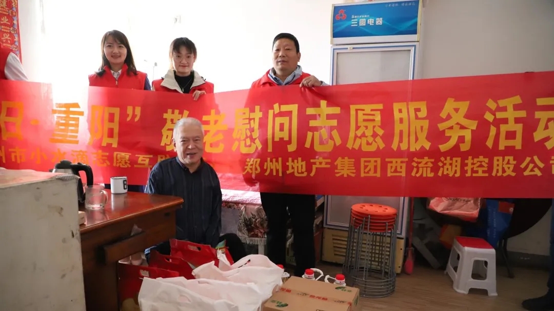 鄭州地產集團西流湖公司志愿服務隊聯合小水滴志愿互助中心志愿者前往鄭州市低保對象、一級肢殘者李保山老人家中開展敬老慰問志愿服務活動。