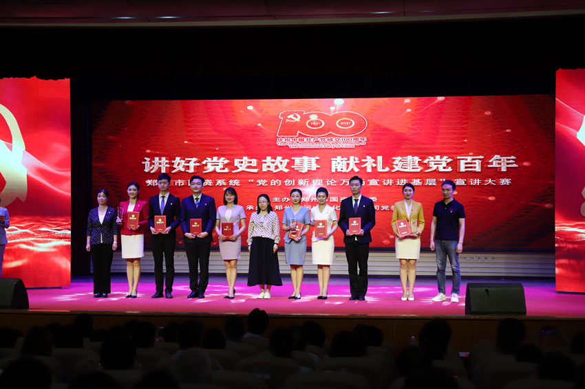 為慶祝中國共產黨成立100周年, 扎實開展黨史學習教育,5月26日上午,鄭州市國資系統“講好黨史故事·獻禮建黨百年”——“黨的創新理論萬場宣講進基層”宣講大賽在市總工會一樓職工大禮堂圓滿落下帷幕。來自市國資系統14家單位選送的15個宣講節目進入大賽決賽,鄭州地產集團選送的西流湖公司黨支部宣講節目《百年交響》榮獲三等獎。