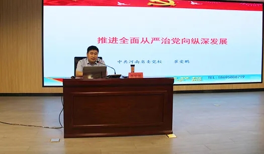 隨后,河南省委黨校崔愛鵬教授作了題為《推進(jìn)全面從嚴(yán)治黨向縱深發(fā)展》的專題培訓(xùn)。培訓(xùn)中,崔愛鵬教授從深刻理解新時代全面從嚴(yán)治黨向縱深發(fā)展的重大意義、全面把握新時代黨的建設(shè)的總要求、貫徹落實習(xí)近平總書記關(guān)于全面從嚴(yán)治黨的重要論述三個方面進(jìn)行了全面剖析和深入解讀,以史實為依據(jù),深入淺出,娓娓道來,使大家充分認(rèn)識到,“嚴(yán)”是立黨的初心品質(zhì),是治黨的鮮明特色,也是強(qiáng)黨的經(jīng)驗優(yōu)勢。堅持從嚴(yán)治黨,更是我們黨克服一切艱難險阻、完成歷史使命的重要政治優(yōu)勢,為集團(tuán)學(xué)習(xí)黨史、了解黨史,進(jìn)一步做好黨風(fēng)廉政建設(shè)和作風(fēng)建設(shè)工作提供了指南。