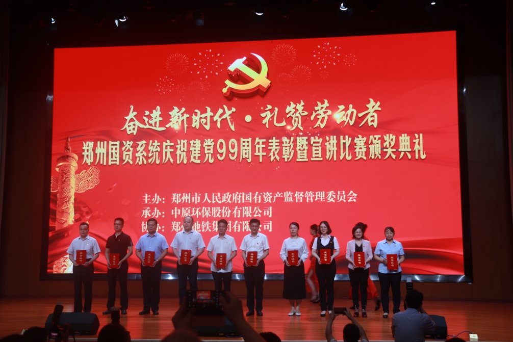 為慶祝中國共產黨成立99周年,重溫黨的光輝歷程,傳承黨的優良傳統,6月30日下午,鄭州市國資委舉行“奮進新時代·禮贊勞動者”——鄭州國資系統慶祝建黨99周年表彰暨宣講比賽頒獎典禮,集團黨委書記、董事長萬永生,監事會主席李靜波,以及集團優秀基層黨組織、優秀共產黨員、優秀基層代表、獲獎節目代表等共計20余人參加此次頒獎典禮。