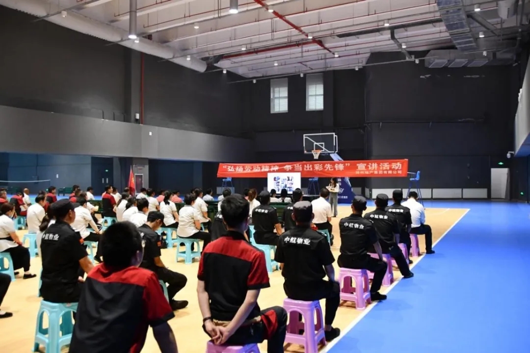 宣講團第一組赴鄭地奧體公司在奧體中心綜合訓練館展開宣講,鄭地奧體、中航物業保潔及安保等一線員工共100余人參加了此次宣講活動。來自黨群黨支部王曉婕、人力資源黨支部馬遠俊、黃河兩岸公司黨支部吳林熹、都市開發公司黨支部馮靜、投資管理公司黨支部范瑩,從學習貫徹習近平總書記重要回信精神、“講好黃河故事”、“ 絲路精神”和共筑中國夢等方面,通過身邊人身邊事,以小見大,講述了一個個平凡而偉大的勞動者的故事,號召全體黨員同志進一步樹立勞動觀念、弘揚勞動精神,爭做出彩鄭地人,以一流的業績和實際行動擔當重任,為集團高質量發展貢獻力量。