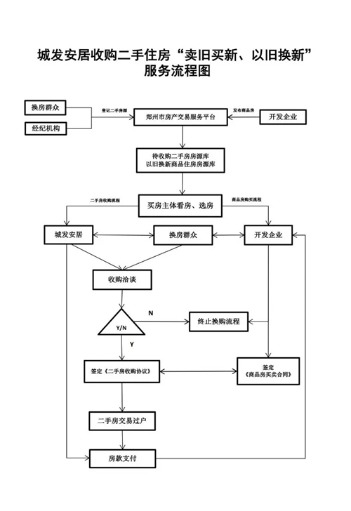 換房群眾可自主選擇通過“鄭州市房產交易服務平臺”或其它渠道掛牌出售二手住房、選購新建商品住房,自由交易實現“賣舊買新、以舊換新”。(二手住房不受城發安居公司收購條件限制、新建商品住房須位于主城區范圍內)