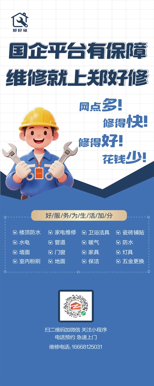 “鄭好修”服務平臺的上線,是鄭州城發安居科技有限公司在房屋維修服務領域的重要創新舉措,也標志著鄭州市房屋維修服務開啟了規范化、便民化的新篇章,值得廣大市民期待。