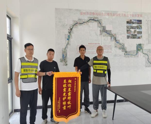 近日,鄭州市賈魯河綠化養護工作收獲暖心認可。鄭東新區崗李村村委向養護團隊贈送錦旗和感謝信,以“朝迎晨露修枝葉,暮披霞光護綠茵” 贊揚工作人員的辛勤付出。