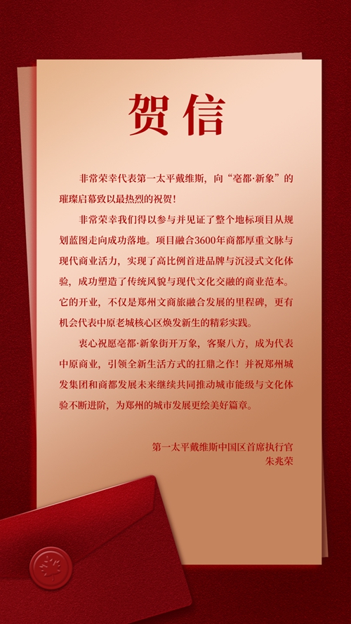 “亳都·新象”由城發集團投資建設,項目的成功開街,不僅是商業運營的勝利,更是城市文化與商業融合發展的典范。第一太平戴維斯中國區首席執行官朱兆榮在賀詞中表示,“亳都·新象的開業,不僅是鄭州文商旅融合發展的里程碑,更有機會代表中原老城核心區煥發新生的精彩實踐。”