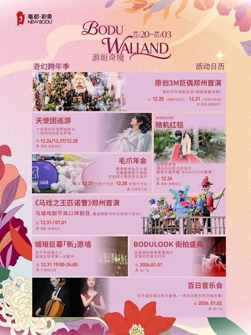 烏鎮(zhèn)戲劇節(jié)熱門劇目《馬戲之王匹諾曹》鄭州首演,帶你闖入夢幻童話世界;市民心愿將通過城垣巨幕“新”愿墻映上古老城墻,讓歷史見證美好憧憬;街拍盛典解鎖“巨星待遇”;格萊美級慢鏡頭定格高光瞬間;百日音樂會中西交融的旋律流淌街巷;竹藝美陳織就古今漫游動線,邀全城市民共赴跨越時空的迎新之旅。