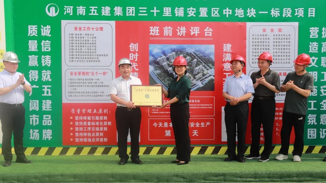 6月2日下午,鄭州市總工會機關工會主任王銀倉、市總工會勞動和經濟部部長宋慧分別向集團兩家獲獎公司頒發鄭州市“安康杯”競賽優勝單位獎牌。