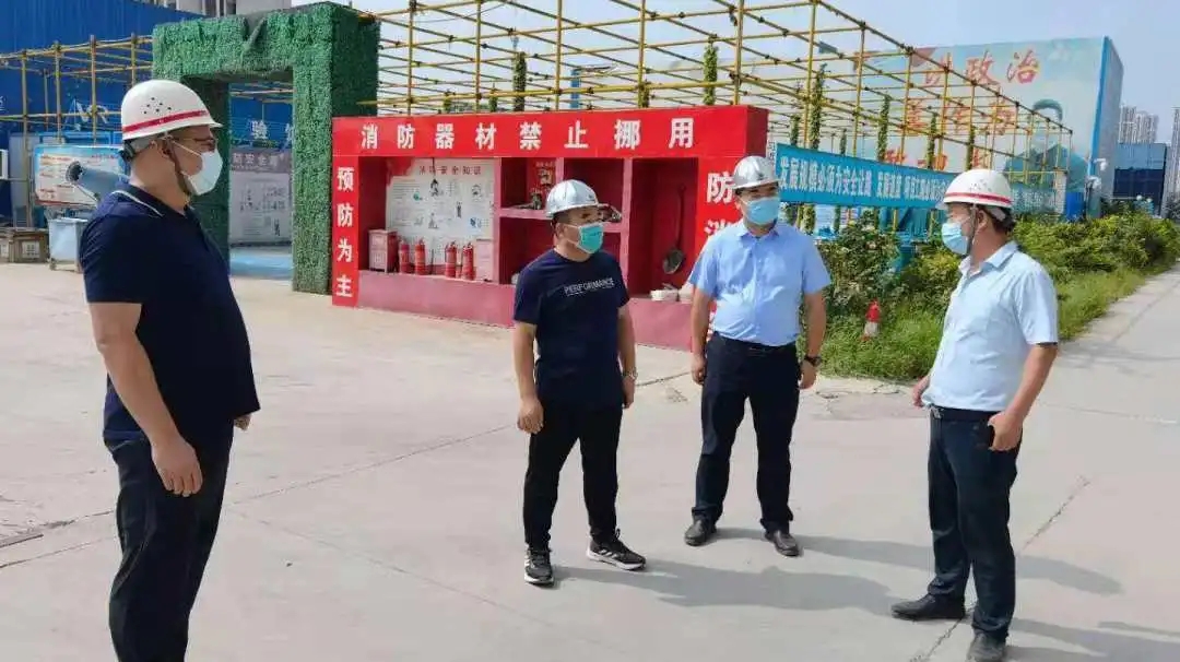 在鄭州地產集團西流湖公司中原新區安置房項目現場,公司負責人帶領施工單位等有關人員全方位檢查防汛工作,詳細詢問防汛救災物資儲備、汛情預警信息響應機制以及施工人員安全保障等各項工作,嚴令要不留死角和隱患,領導同志要當好稱職守門員,合格守夜人,科學統籌防汛力量,以果斷果敢之勇,繡花功夫之智,鑄就防汛抗洪的銅墻鐵壁。